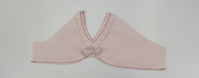 Nun die drei kleinen Schlaufen am Ärmelsaum drapieren, so dass eine Art Blume entsteht und fixieren.