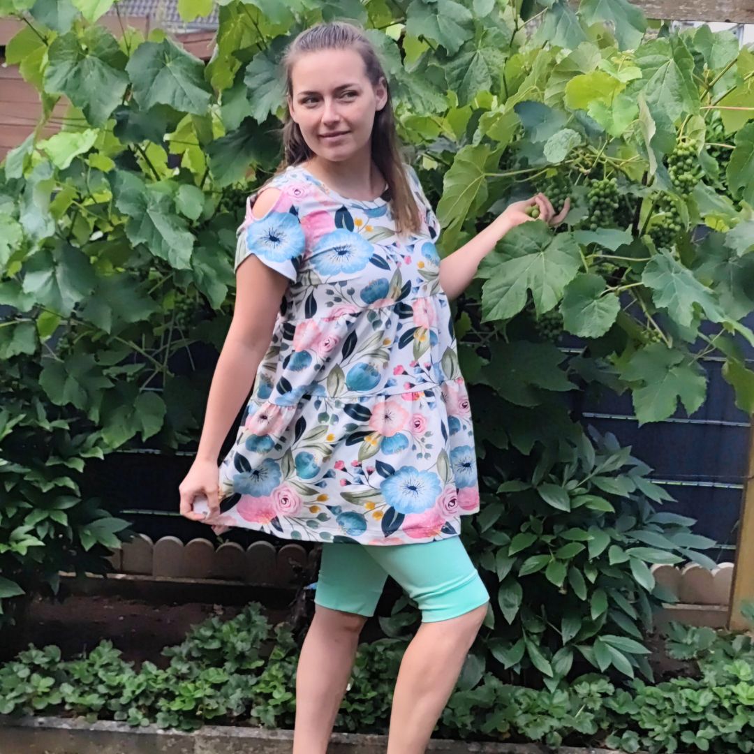 Um die Ärmelvariante optimal umzusetzen, benötigst du einen passenden Schnitt für einen kurzen Ärmel, der gut zu dieser Stilrichtung passt. Sowohl Jersey als auch Webstoffe eignen sich für das Projekt, jedoch empfehlen wir Webstoffe, da sie eine ansprechendere Optik bieten. Zusätzlich benötigst du etwas Einlage, einen Bleistift zum Einzeichnen der Rundung sowie das übliche Nähzubehör wie Schere, Nähmaschine und Bügeleisen.