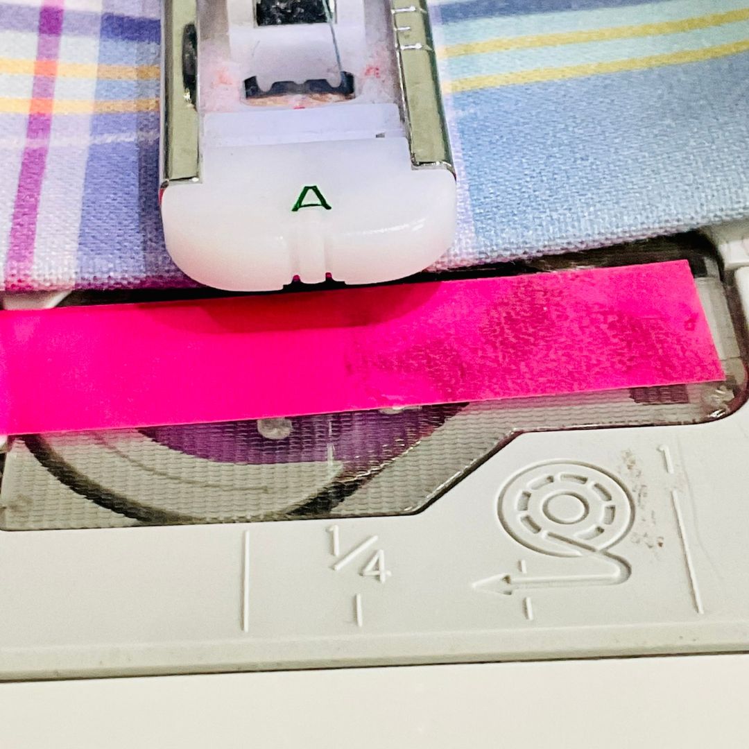Verwende einen Tesastreifen, um die Startposition auf deiner Nähmaschine zu markieren, an der der Stoff angelegt werden muss. Dadurch ist sichergestellt, dass alle Knopflöcher auf derselben Höhe sind und du dir das lästige Messen ersparst. Besitzt Du keine Knopflochautomatik zeichnest Du das komplette Knopfloch in der gewünschten Länge an. Hier ist es um so wichtiger, dass Du ein Probeknopfloch nähst um zu kontrollieren, ob die Länge ausreicht.