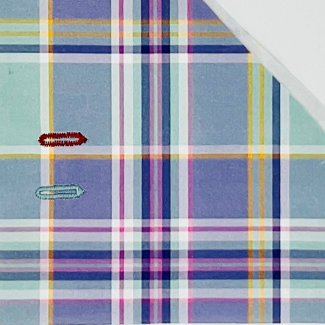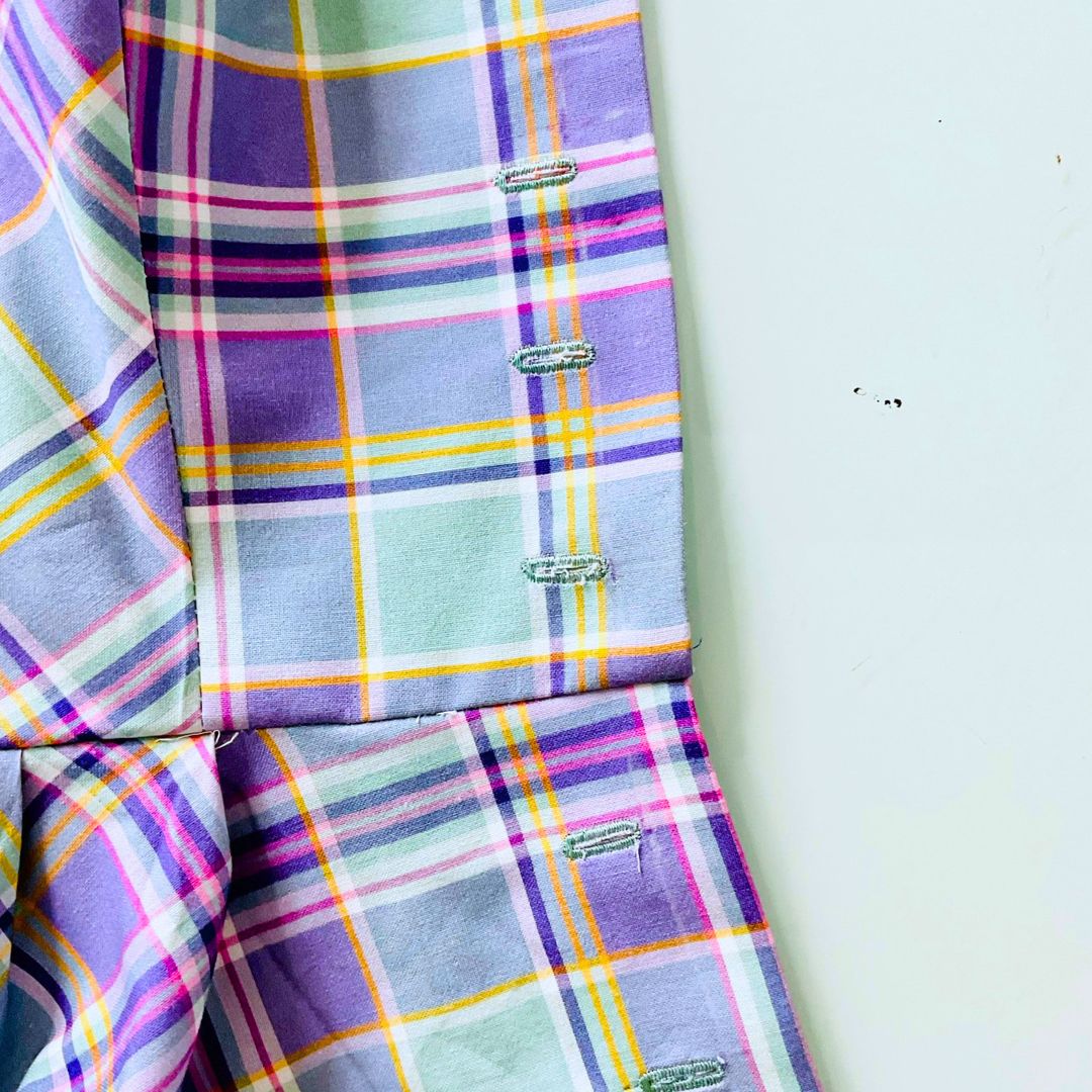 Zeichne auf dem Teststück die vordere Mitte ein, z.B. mit Kreide, Prym-Markern oder einem Heftfaden (falls Stifte auf dem Stoff nicht halten oder zu sehen sind), um die Position der Knopflöcher zu bestimmen. Nähe das erste Knopfloch und überprüfe, ob es dir gefällt. Falls nötig, kannst nun die Nahtdichte anpassen und die Position korrigieren. Wir verwenden übrigens Stickgarn für die Knopföcher, damit werden sie besonders schön.
