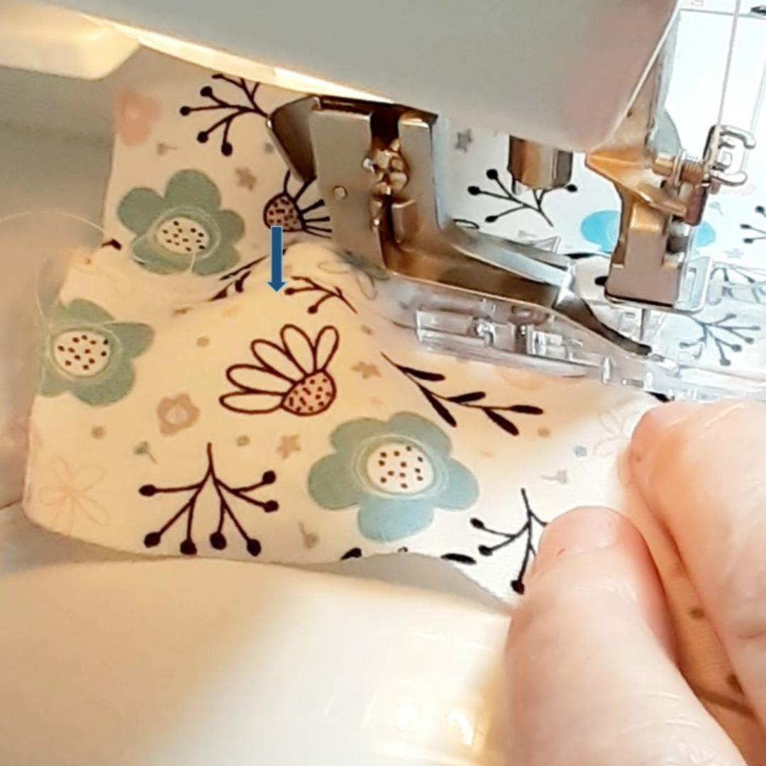 Den Bogen flach und gerade in die Nähmaschine legen – nicht gebogen – alles muss gerade vor Dir liegen.
