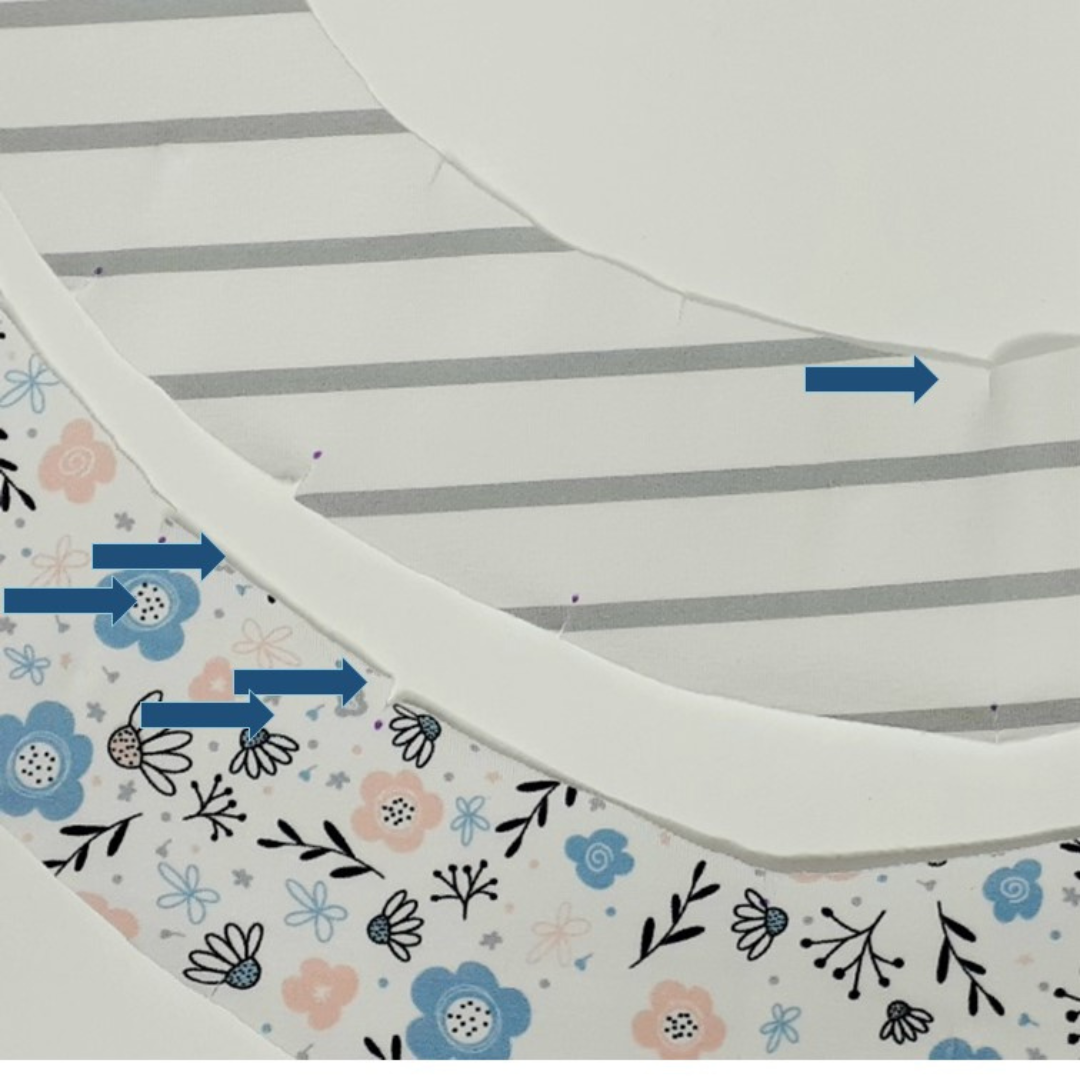 Hier siehst Du die kleinen Einschnitte – diese benötigst Du, um die Teile genau zusammennähen zu können – die Passpunkte liegen beim Nähen aufeinander.