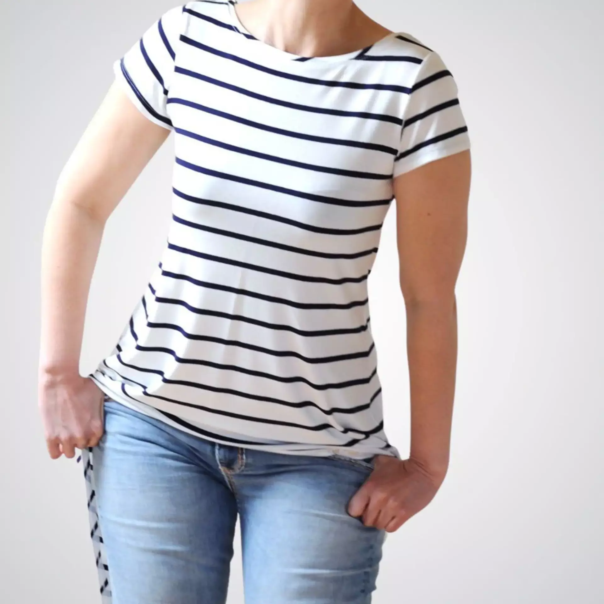Mit dem Schnittmuster Fabiella nähst Du Dir ein pfiffiges Shirt für den Sommer, das Du in zwei Varianten gestalten kannst:
