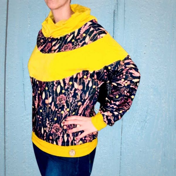 Der Schnitt eignet sich für viele eigene gestalterische Ideen – mit Passe, ohne Passe, mit Applikationen, auch Stoffmustermix ist möglich, wie Du an unseren Designbeispielen sehen kannst. Es lassen sich mit Sicherheit auch viele Stoffreste verwerten, die wir viel zu schade finden, um sie wegzuwerfen #stoffresteverwertung .