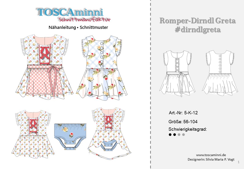 Mit dem Schnittmuster Greta nähst Du Dir einen bezaubernden Romper, der gleichzeitig wie ein Dirndl aussieht. Das Dirndl ist extra für Babies und Kleinkinder konzipiert. Die Schürze ist festgenäht, so dass diese nicht verrutschen kann. Untendrunter ist es ein Strampelanzug also ein kleiner Body mit Knöpfen, so dass sich ganz leicht die Windeln wechseln lassen.