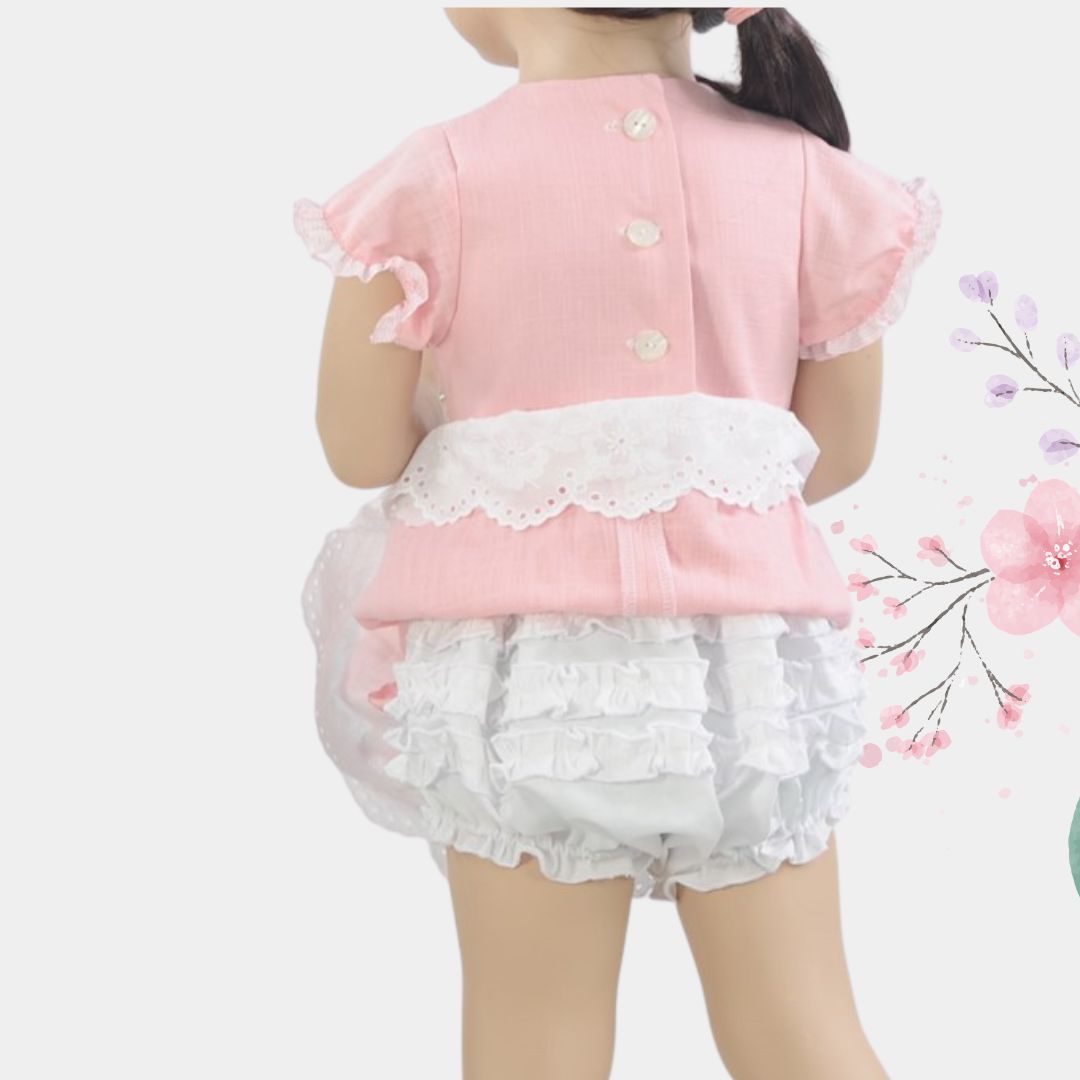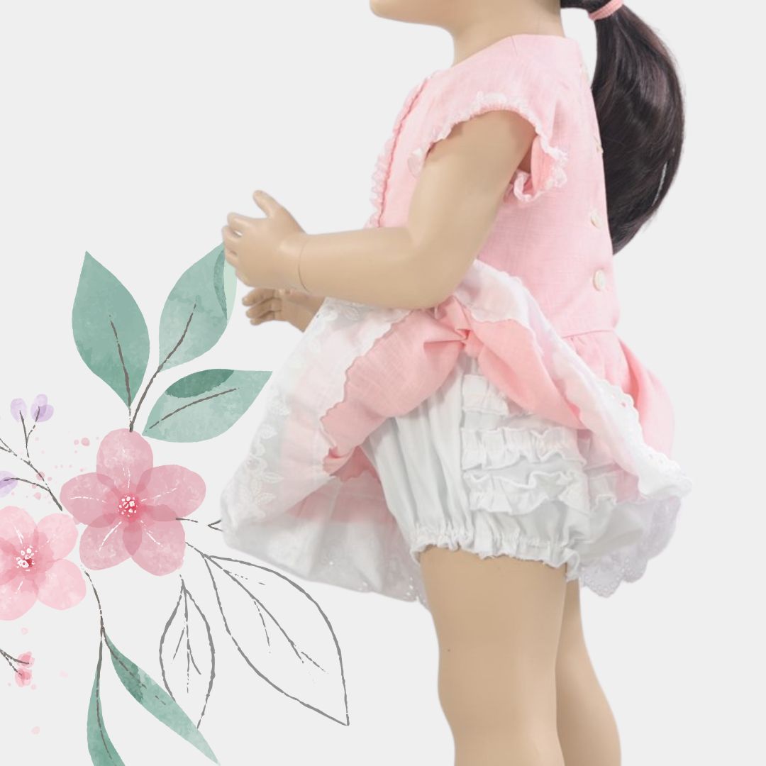 Die Pumphose wurde mit kleinen Rüschen am Po verziert, so dass der Rock den entsprechenden Stand hat und das „Untendrunter“ natürlich auch standesgemäß einem Dirndl entspricht. Der Dirndl-Romper wird aus Webware genäht, theoretisch geht auch Jersey, was wir aber nicht so traditionell finden aber das ist Geschmackssache.