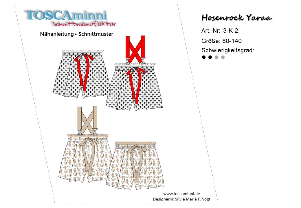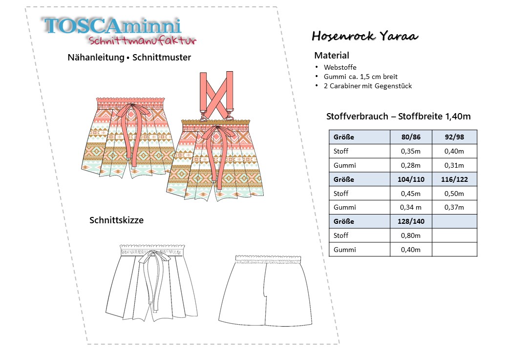 Freche Shorts für Mädchen – unser Hosenrock Yaraa. Der Hosenrock ist schnell genäht und sieht – je nach Stoffwahl elegant oder sportlich aus. Besonders pfiffig dazu wirken die Hosenträger. Die Nähanleitung ist ausführlich bebildert, so dass auch Nähanfänger*innen gut zurechtkommen werden. Das Schnittmuster ist für Webware geeignet.