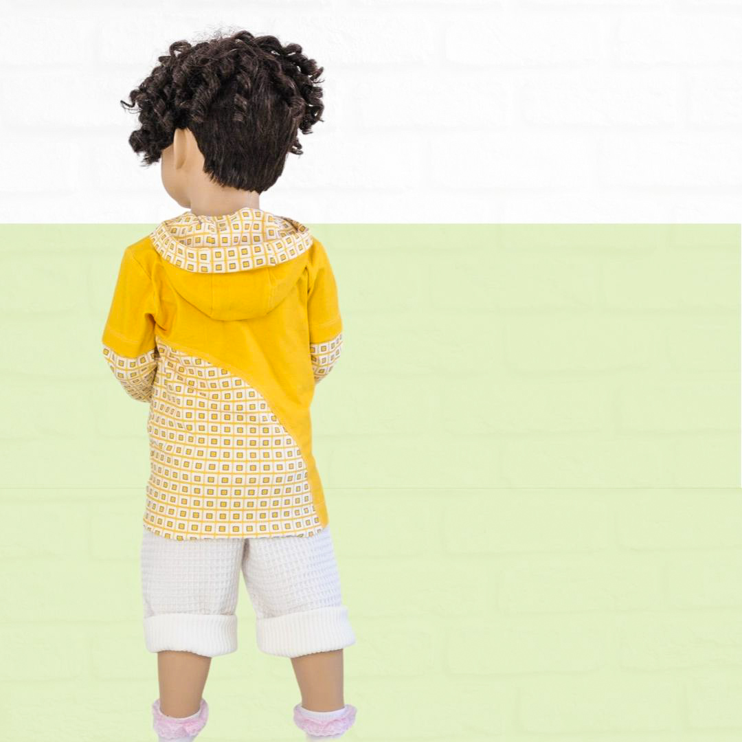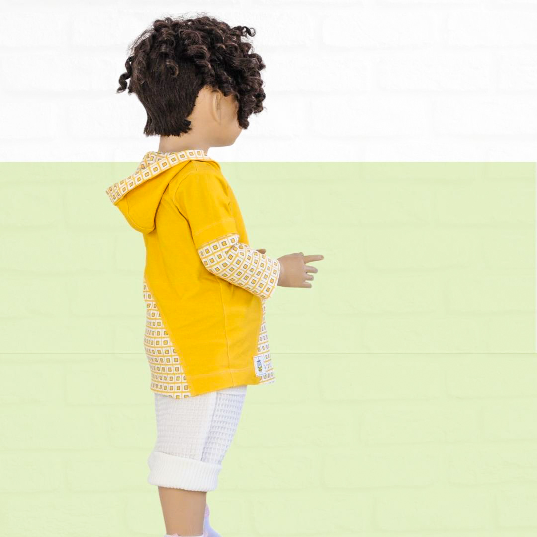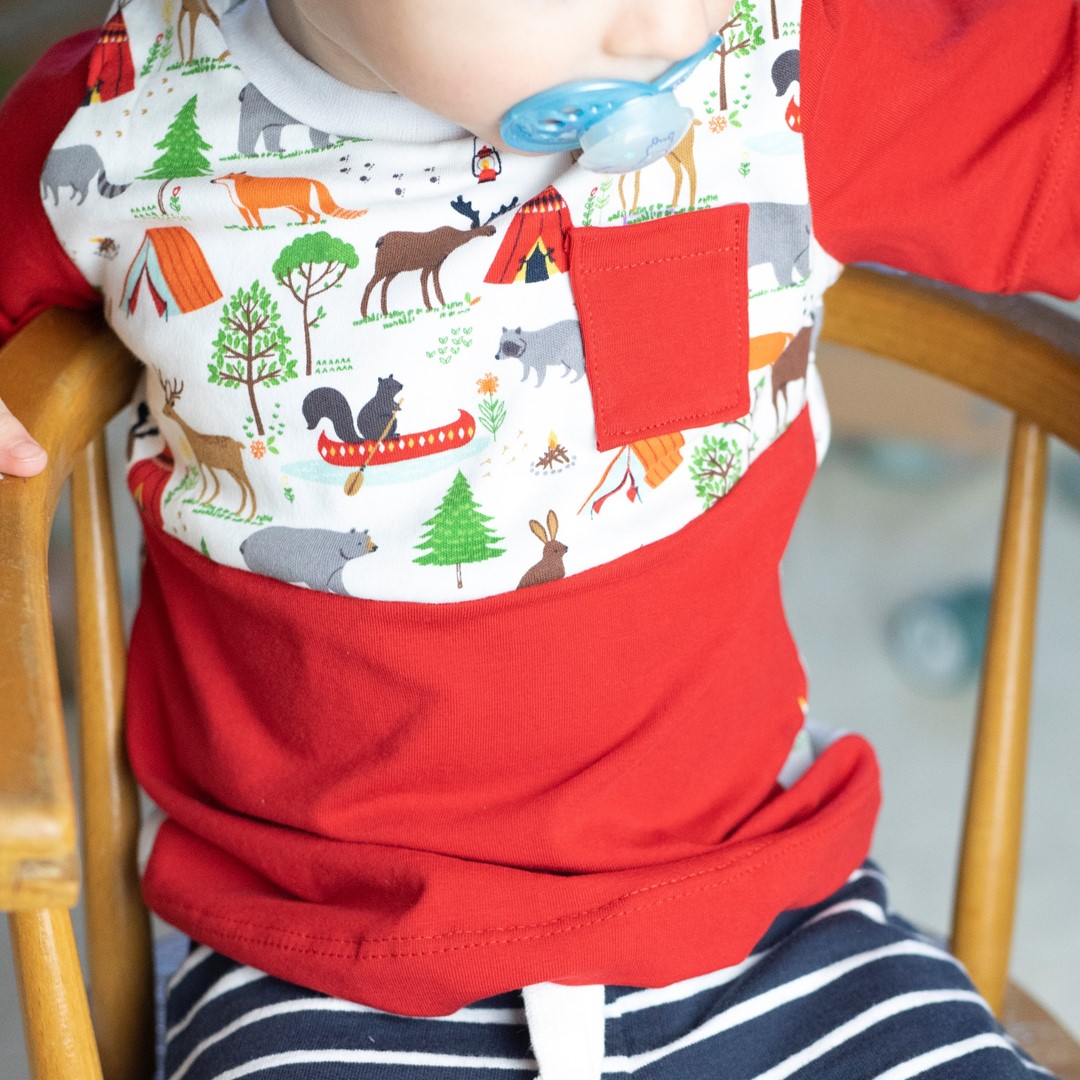 Das Schnittmuster für das Kindershirt Luca ist ein Basic-Schnitt für Jungs und Mädchen. Du kannst das Shirt aus einer Variation von Einzelteilen zusammensetzen. Wähle einen Korpus, zum Beispiel mit Teilungsnaht und nähe das Shirt mit Stehkragen, Kapuze oder Bündchen – langarm – kurzarm. Ebenso sind verschiedene Taschen mit dabei.
