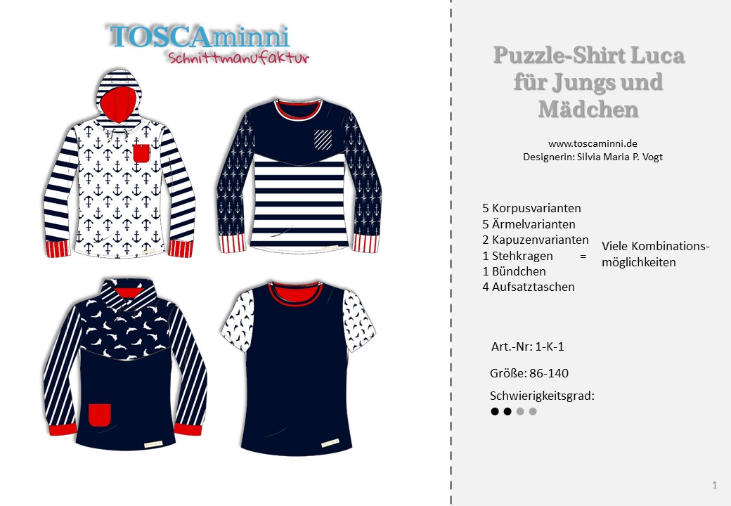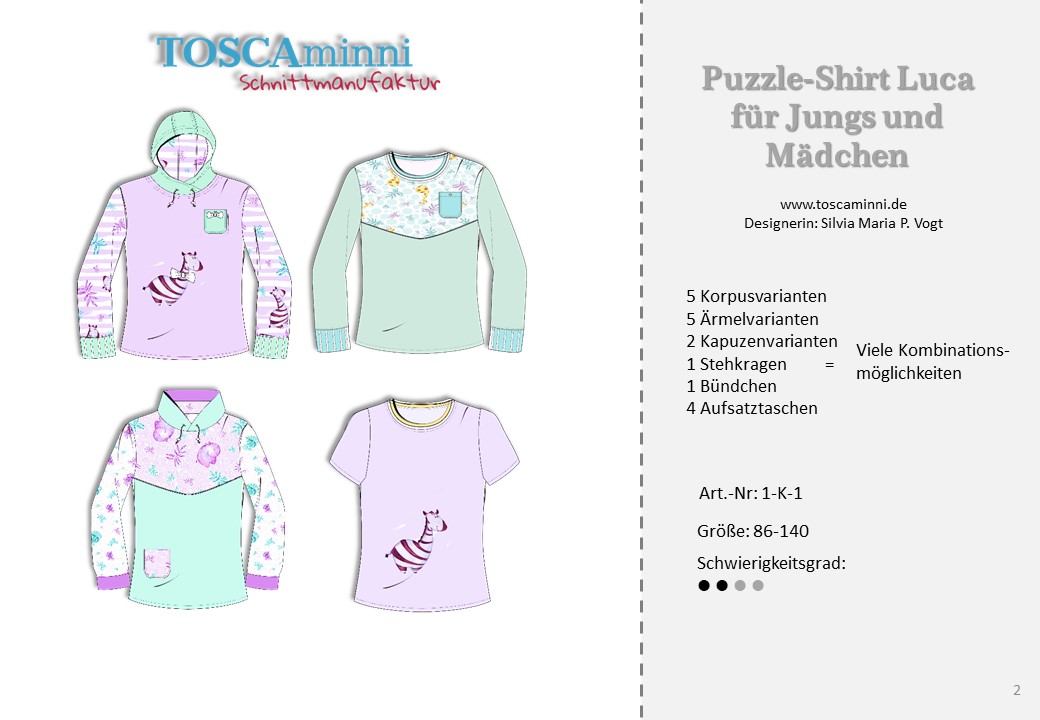 Mit dem Schnittmuster Luca hast Du einen vielfältigen Puzzle-Schnitt, den Du beliebig oft variieren kannst.