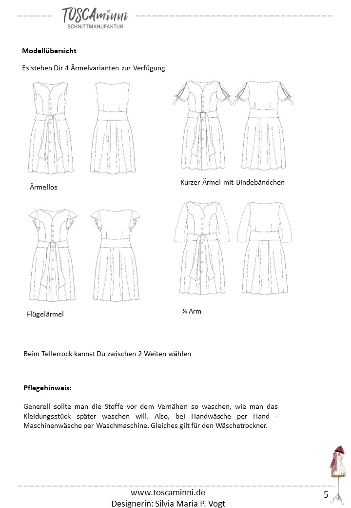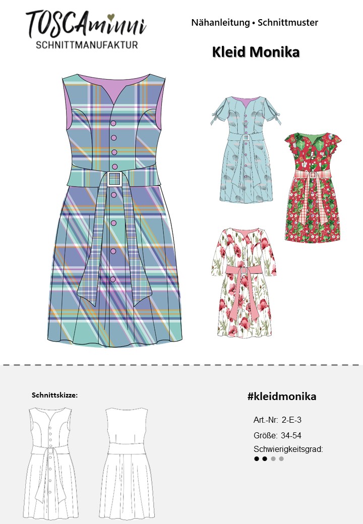 Entdecke das bezaubernde Schnittmuster Monika – ein romantisches Kleid im Vintage-Look! Das Kleid wird aus Webware genäht und ist vorne durchgehend geknöpft, wodurch es einen Hauch von Nostalgie versprüht. Das Oberteil des Kleides kannst du ganz nach deinem Geschmack ärmellos gestalten oder mit verschiedenen Ärmeloptionen kombinieren, wie z.B. Ärmel mit Bindebändchen, verspielten Volant-Ärmeln oder eleganten 3/4-Ärmeln.
