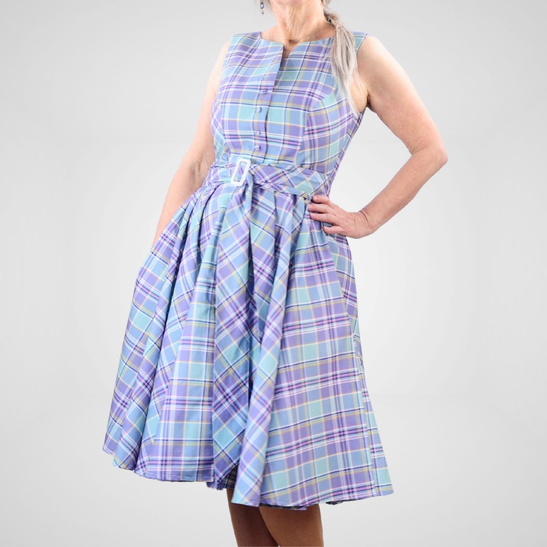Der Rock ist als klassischer Tellerrock gestaltet und bietet dir die Möglichkeit, zwischen zwei Weiten zu wählen, um deinem Kleid den perfekten Schwung zu verleihen. Ein Stoffgürtel rundet das Design ab und betont deine Taille. Das Oberteil ist abgefüttert und sorgt so nochmals für den optimalen Sitz.