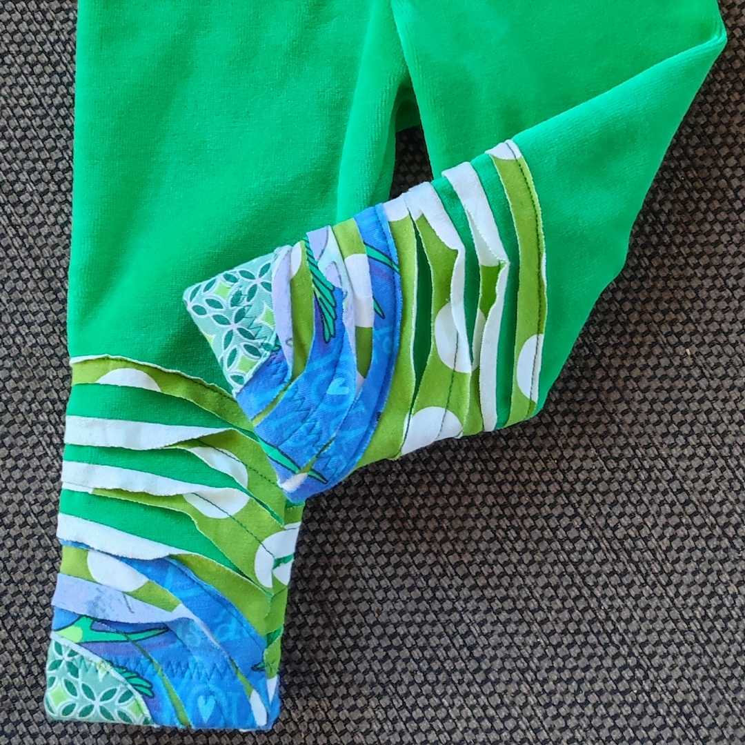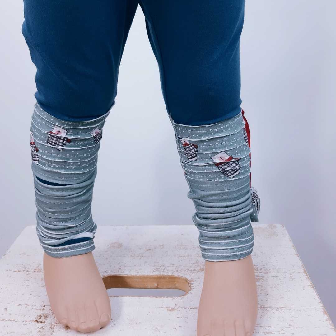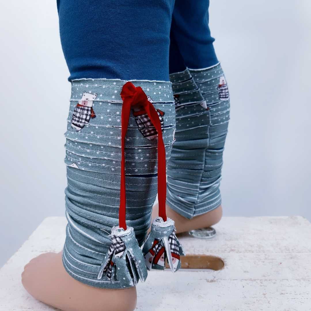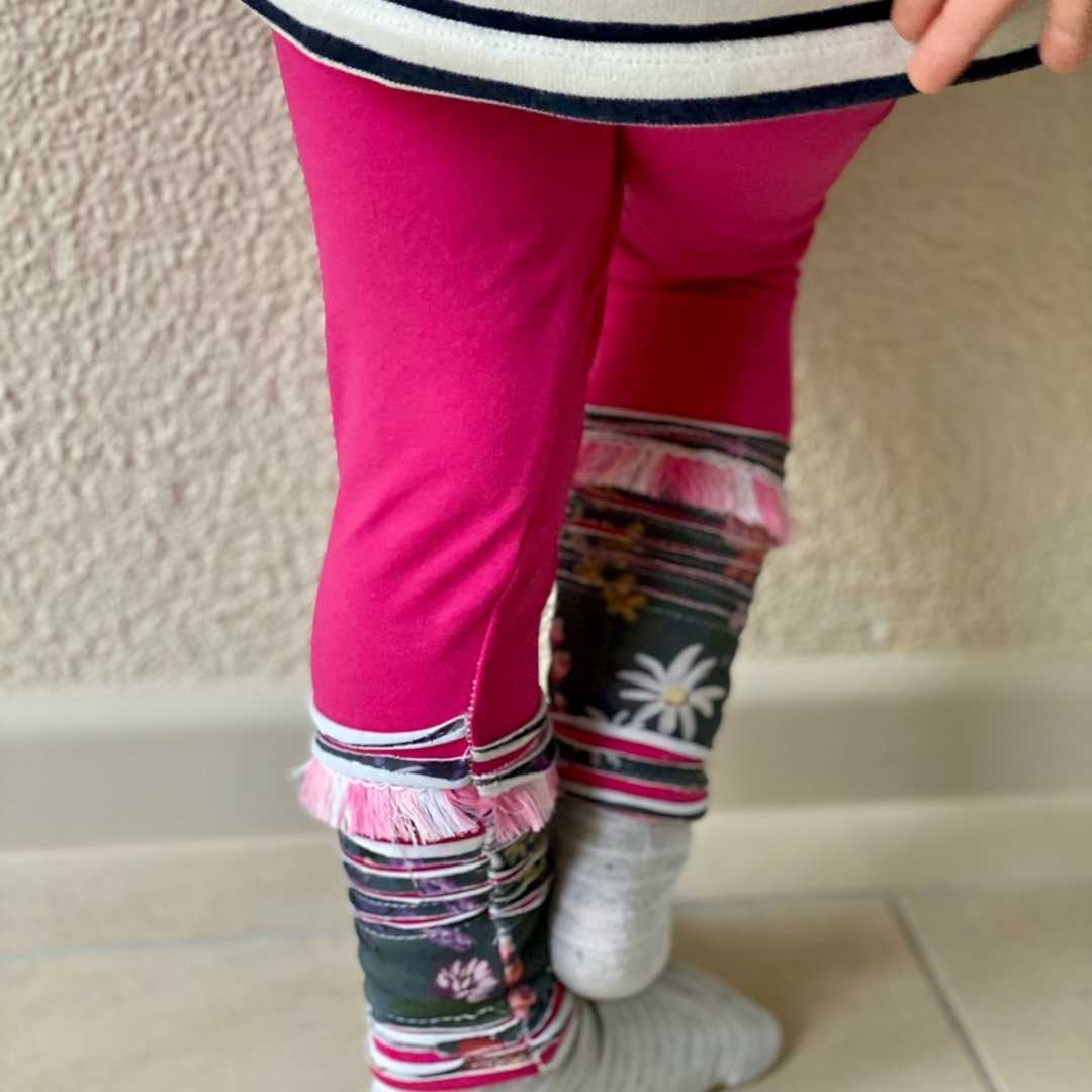 Leggings – die beliebte Ergänzung passend zu fast jedem Kleid: Sie sind vielseitig einsetzbar und einfach zu nähen. Wir haben bei unserem Modell die Chenille-Technik mit eingebaut und Quasten/Rüschen als Getüddel zum Verzieren. Die Chenille-Technik eignet sich wunderbar, um Stoffreste zu verwerten. Der Leggings-schnitt bietet Dir zwei Passformen – einmal enganliegend und einmal etwas weiter geschnitten, um Strumpfhosen darunter tragen zu können.