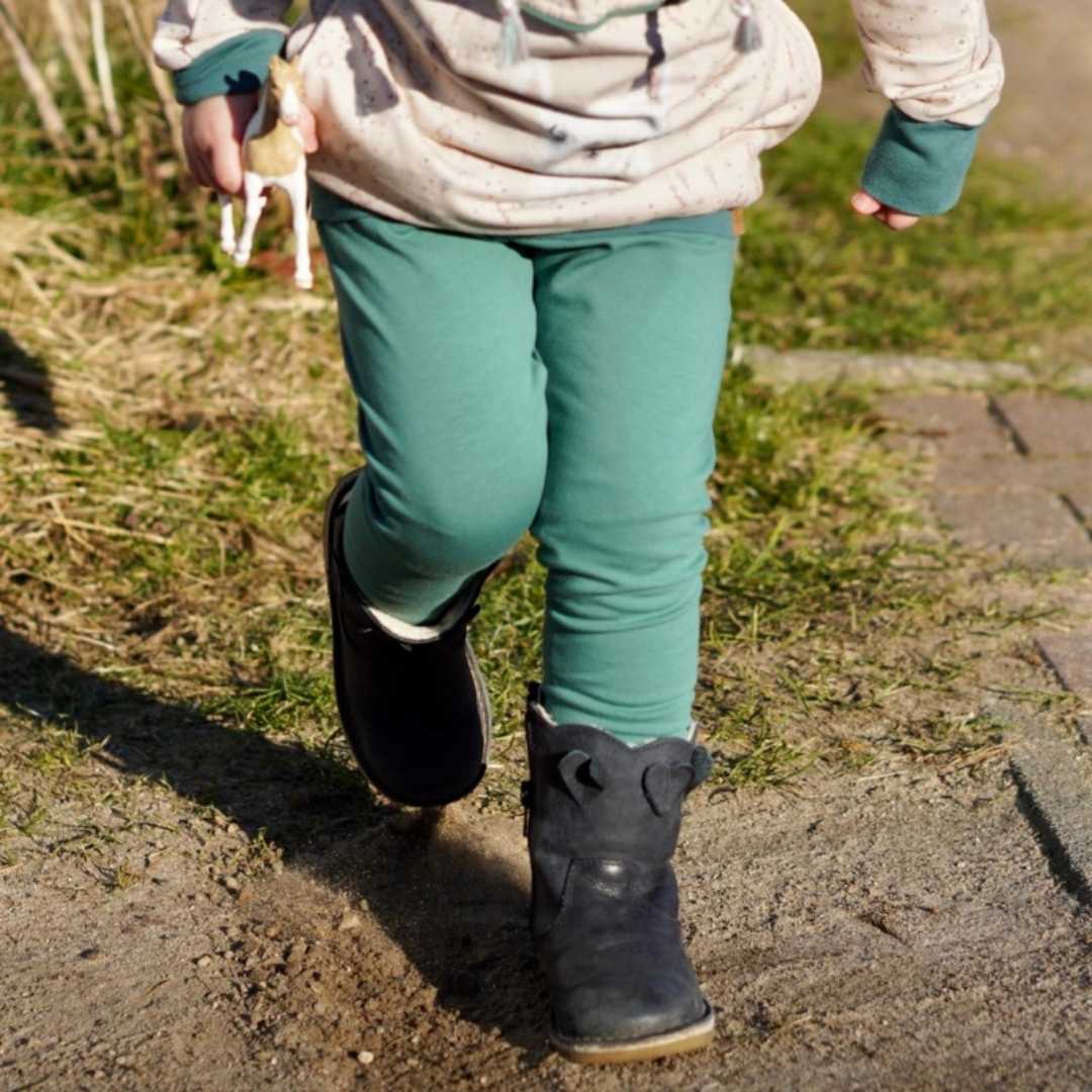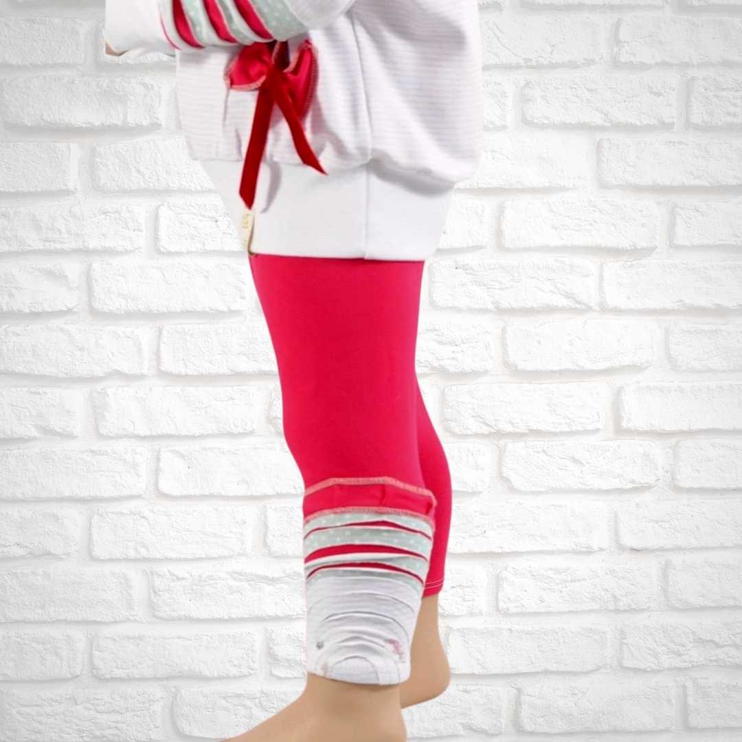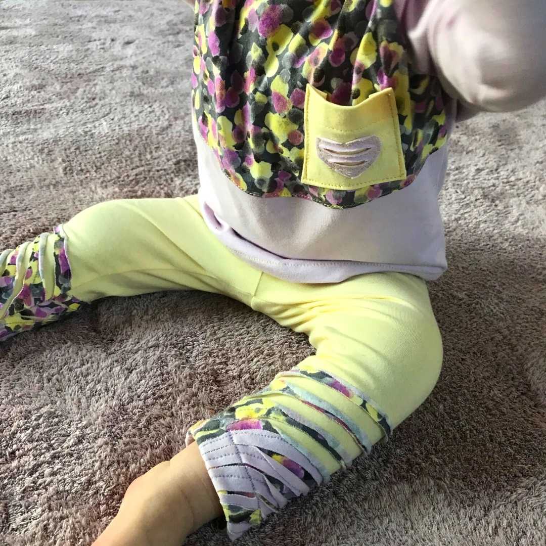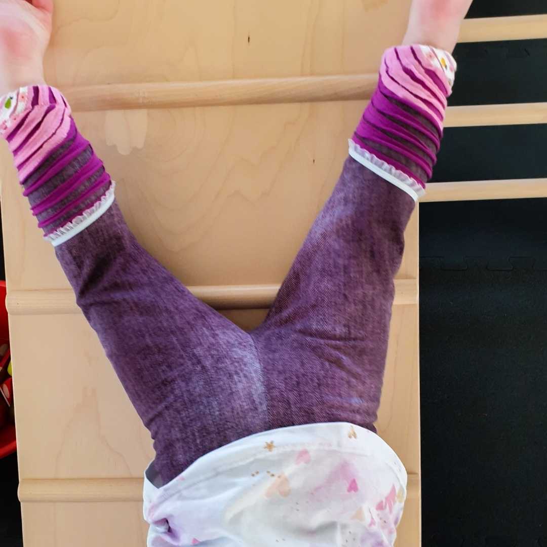 Leggings – die beliebte Ergänzung passend zu fast jedem Kleid: Sie sind vielseitig einsetzbar und einfach zu nähen. Wir haben bei unserem Modell die Chenille-Technik mit eingebaut und Quasten/Rüschen als Getüddel zum Verzieren. Die Chenille-Technik eignet sich wunderbar, um Stoffreste zu verwerten. Der Leggings-schnitt bietet Dir zwei Passformen – einmal enganliegend und einmal etwas weiter geschnitten, um Strumpfhosen darunter tragen zu können.