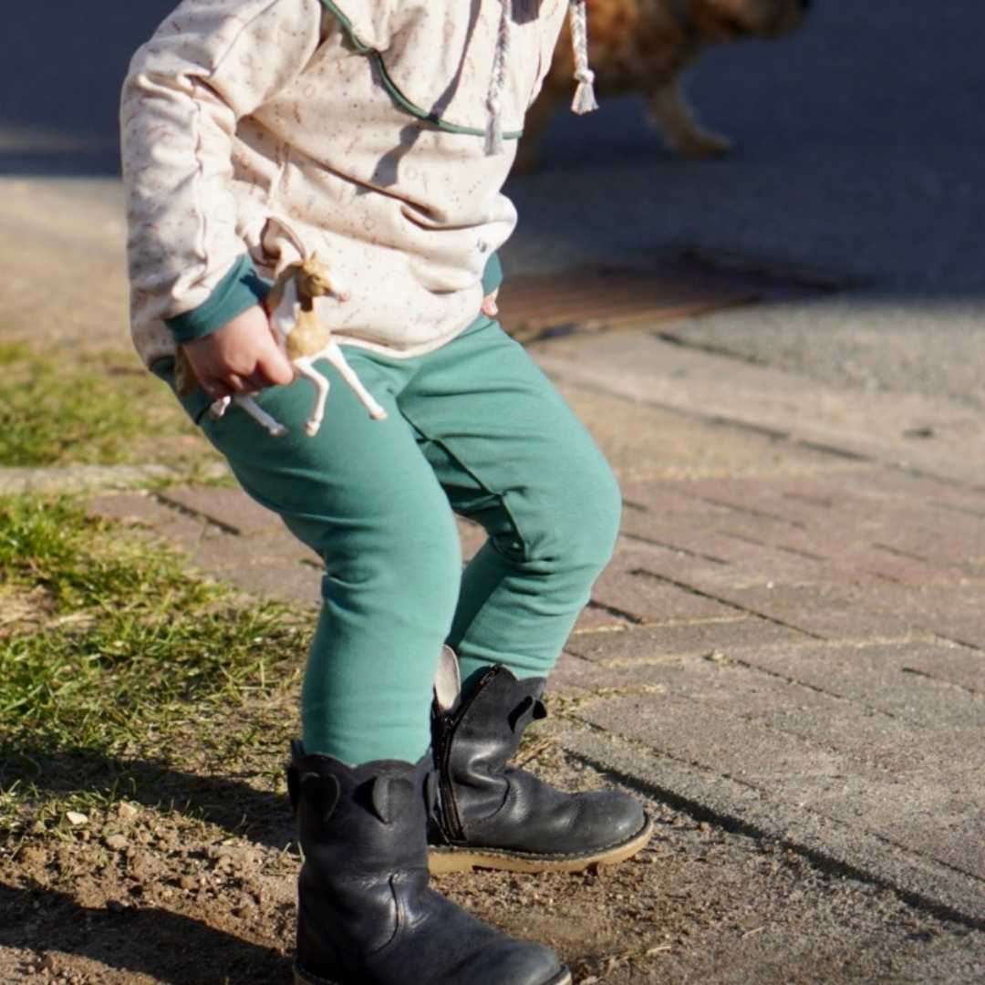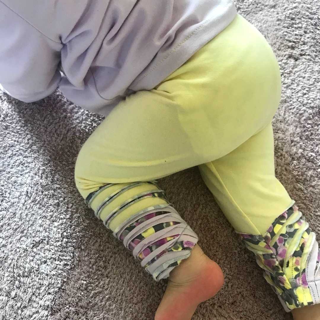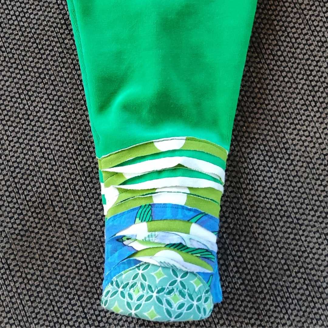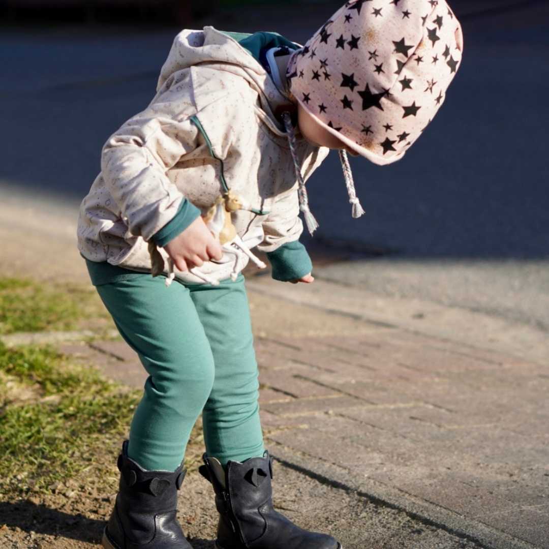 Leggings – die beliebte Ergänzung passend zu fast jedem Kleid: Sie sind vielseitig einsetzbar und einfach zu nähen. Wir haben bei unserem Modell die Chenille-Technik mit eingebaut und Quasten/Rüschen als Getüddel zum Verzieren. Die Chenille-Technik eignet sich wunderbar, um Stoffreste zu verwerten. Der Leggings-schnitt bietet Dir zwei Passformen – einmal enganliegend und einmal etwas weiter geschnitten, um Strumpfhosen darunter tragen zu können.
