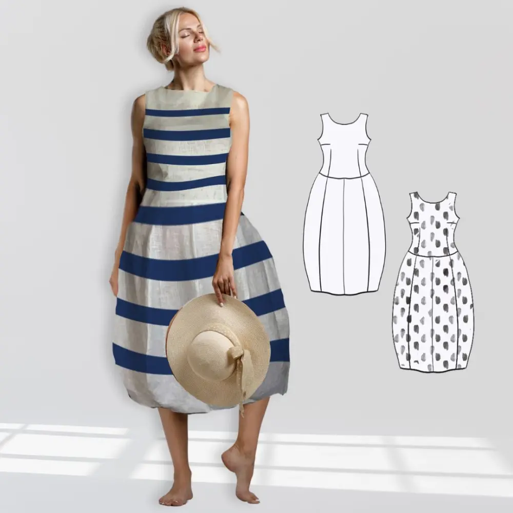 Mit Sibilla kannst du dir ein minimalistisches Leinenkleid mit einem tollen Ballonrock nähen. Das Kleid ist sehr vielseitig und wirkt – je nach Stoffwahl und Accessoires sportlich, elegant, romantisch und auf alle Fälle feminin. Es passt daher praktisch zu jedem Anlass.
