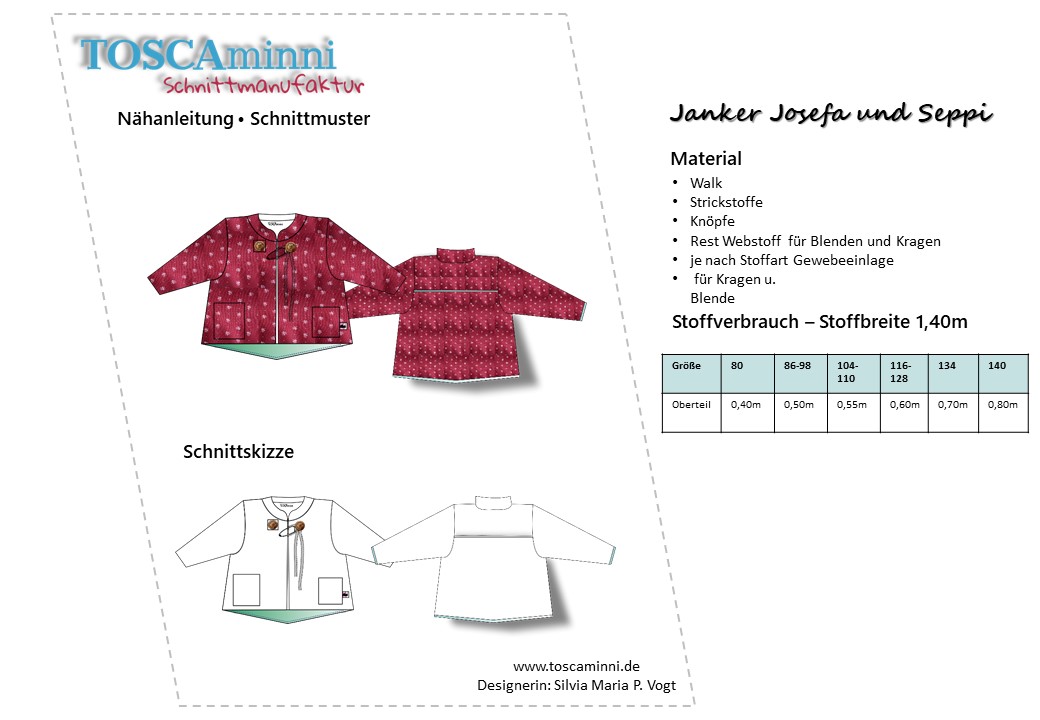 Trachtenjacke Seppi+Josefa Gr. 80-140 Schnittmuster & Nähanleitung