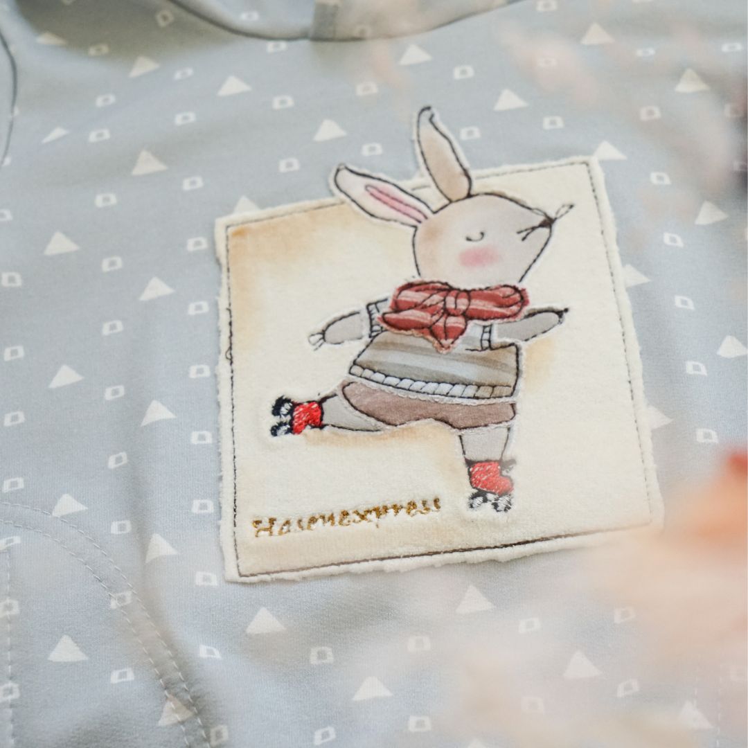 Avec le fichier de broderie correspondant au motif du lapin – lapin garçon ou lapin fille au choix – tu compléteras ton projet de manière harmonieuse.