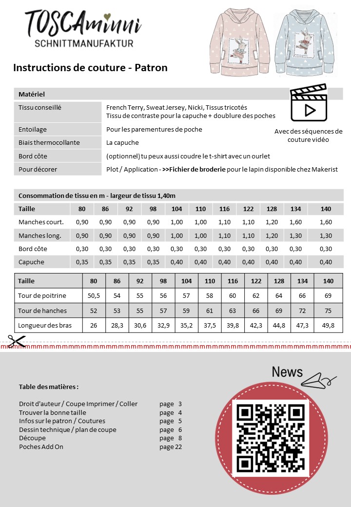 Avec le patron Ela + Kai, tu peux coudre un adorable pull à capuche ou un sweat pour enfants, que ce soit avec des manches longues ou courtes, parfait pour les garçons ou les filles. Les remarquables poches carrées sont doublées d’un tissu contrasté et attirent ainsi tous les regards.