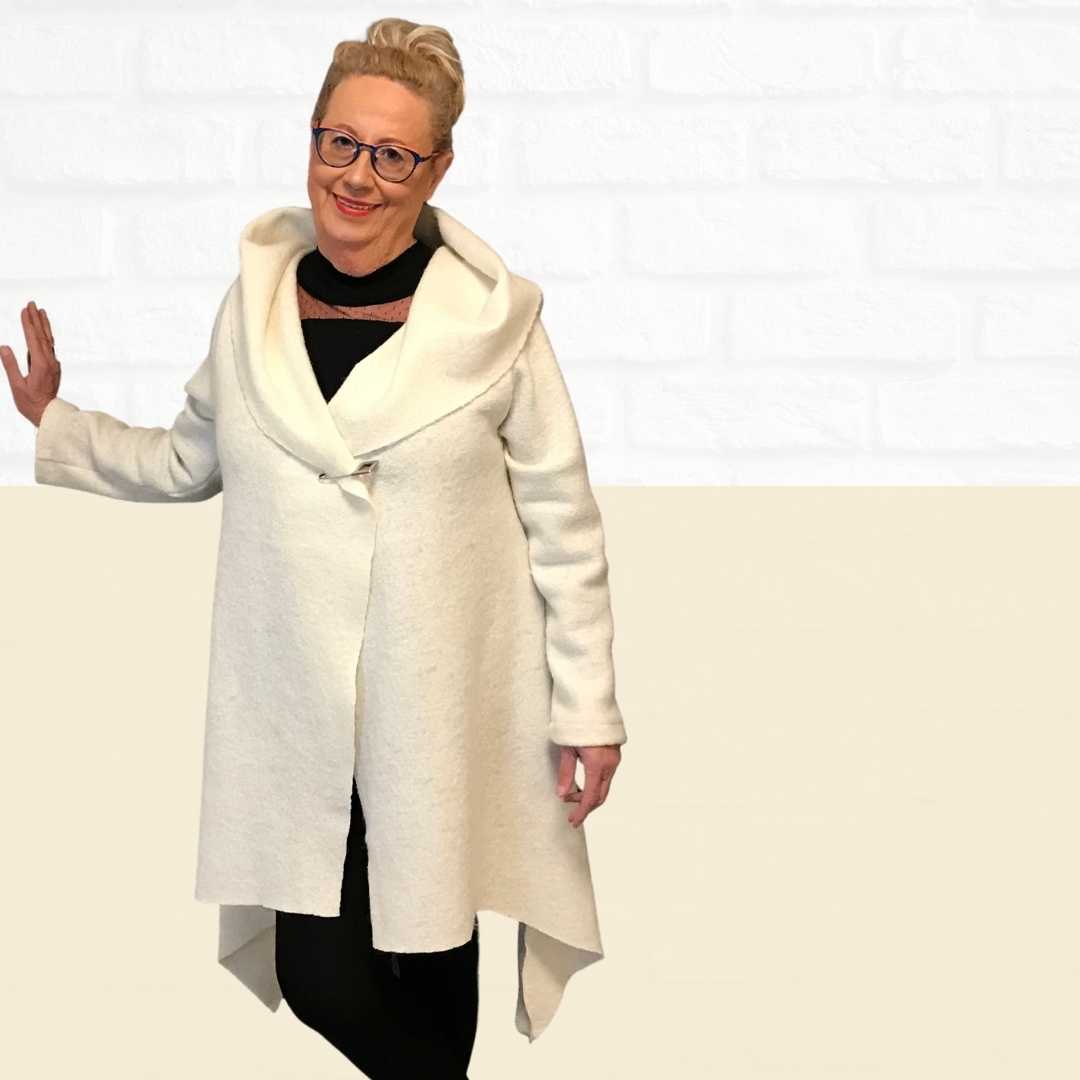 Das Schnittmuster Ashley ist eine schlichte Walkjacke – der perfekte Begleiter für die Übergangstage. Wir haben die Damenjacke aus hochwertigem Walkstoff genäht, der sich anfühlt, wie selbstgestrickt.