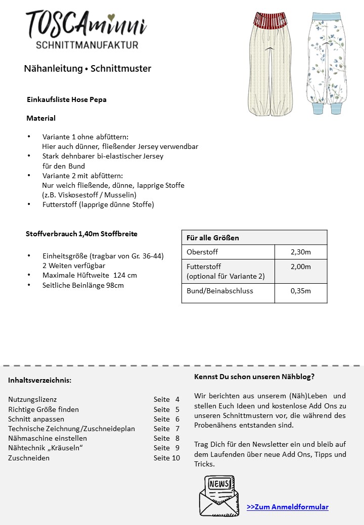 Dein Premium-Papierschnitt kommt bequem per Post zu Dir. Die Nähanleitung steht Dir als pdf-Datei zum Herunterladen zur Verfügung.