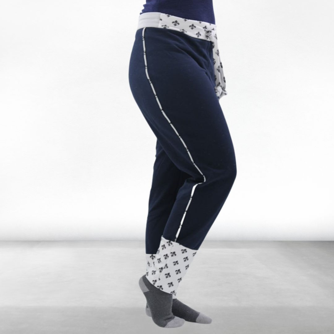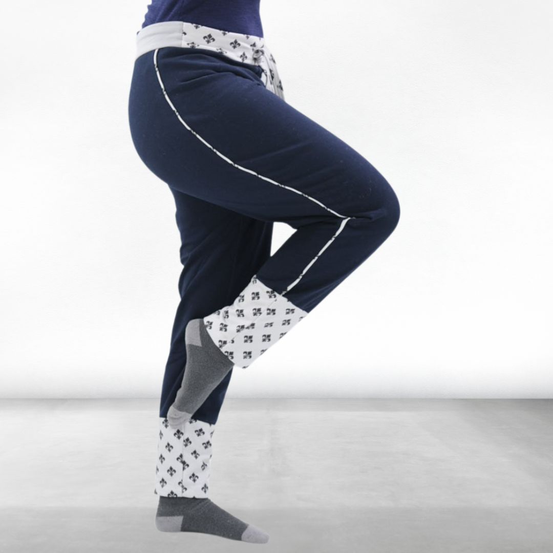 Sichere dir das Schnittmuster für eine coole Jogginghose mit fröhlichem Mustermix – die Damen Hose Lykke in den Größen 34-52. Diese Hose schmiegt sich fast wie eine Leggings an – an den Bein-Enden wurden breite Manschetten angebracht mit denen Du prima Stoffe kombinieren kannst. Noch sportlicher wirkt die Hose, wenn Du Paspeln an den Seitennähten einnähst. Durch die harmonische Kombination verschiedener Stoffe, wie in der Nähanleitung gezeigt, wird auch an trüben Wintertagen ein Hauch von Farbe in dein Outfit gebracht, um das graue Wetter zu vertreiben. Der elastische Bund, der durch ein Bändchen perfekt auf deine Figur abgestimmt werden kann, ermöglicht dir individuelle Anpassung der Weite nach deinen Wünschen.