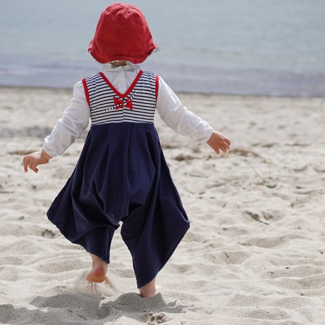 Das Schnittmuster für den Jumpsuit Patty kombiniert eine freche Saroulhose mit einem ärmellosen Oberteil. Der Jumpsuit ist schnell genäht und perfekt für den Sommer, da er luftig zu tragen ist. Durch den Jersey wird kein Reißverschluss benötigt, weil man ganz einfach von oben rein- und rausschlüpfen kann. Wer mag, kann noch Taschen aufsetzen, damit es noch pfiffiger aussieht. Der Overall lässt viel Bewegungsfreiheit zu und eignet sich daher super zum Spielen.