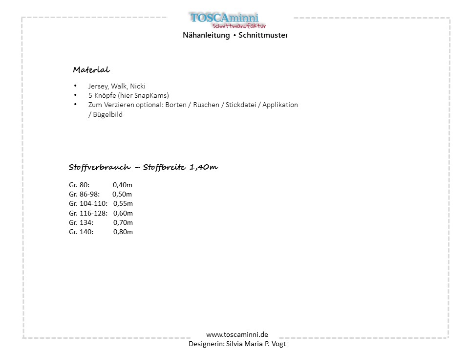 Im Schnitt ist eine Anleitung mit dabei, wie man Ärmel und Jacke nach Wunsch verlängern oder verkürzen kann. Ebenso ist die Nahtzugabe bereit enthalten.
