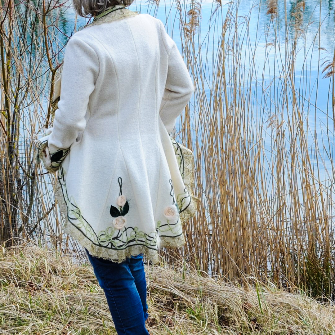 Das Schnittmuster Cilli ist eine elegante Damenjacke. Die Godets sind ein besonderes Highlight, sie verleiht der Jacke einen gewissen Vintage-Look. Gleichzeitig ist die Jacke tailliert geschnitten und wirkt daher besonders elegant.