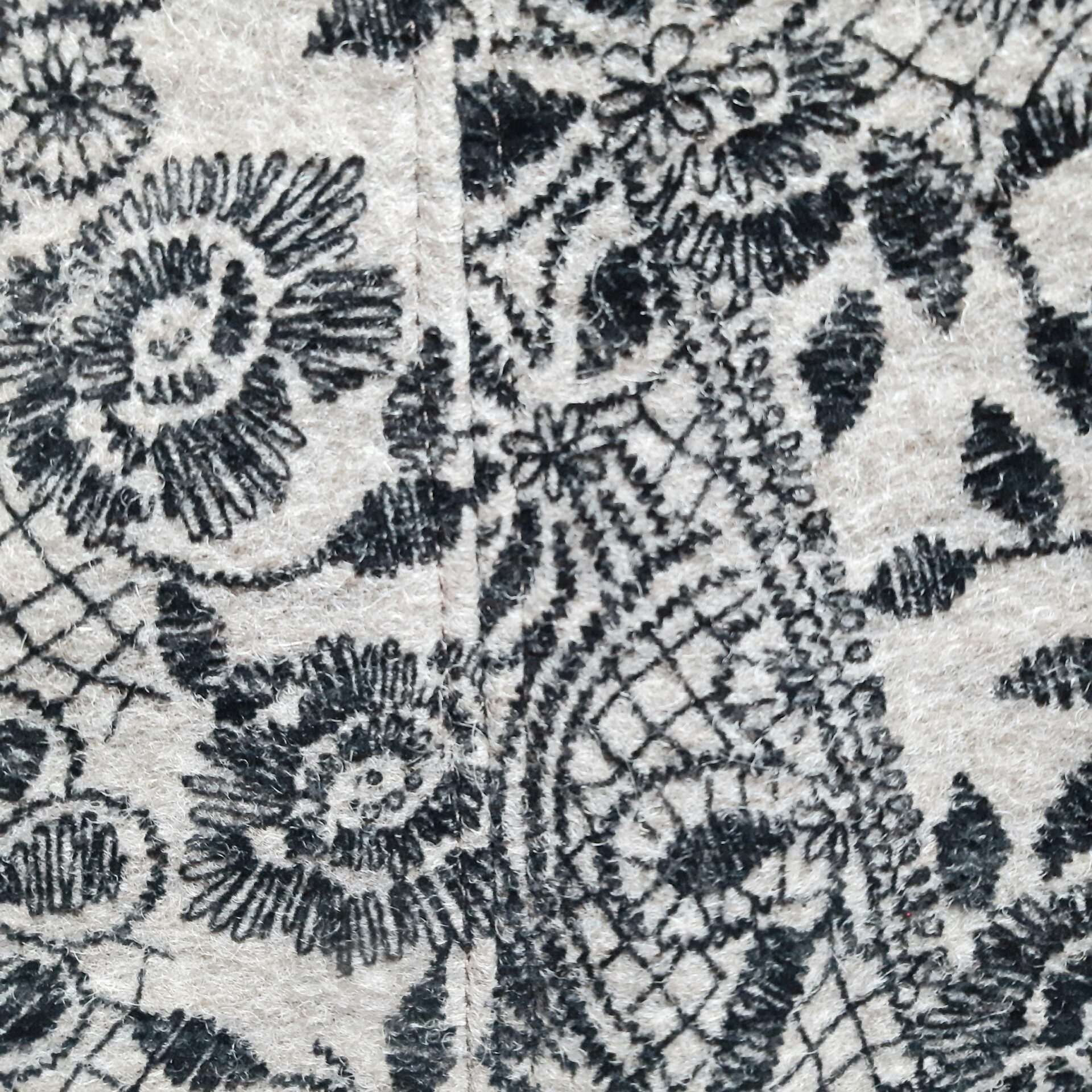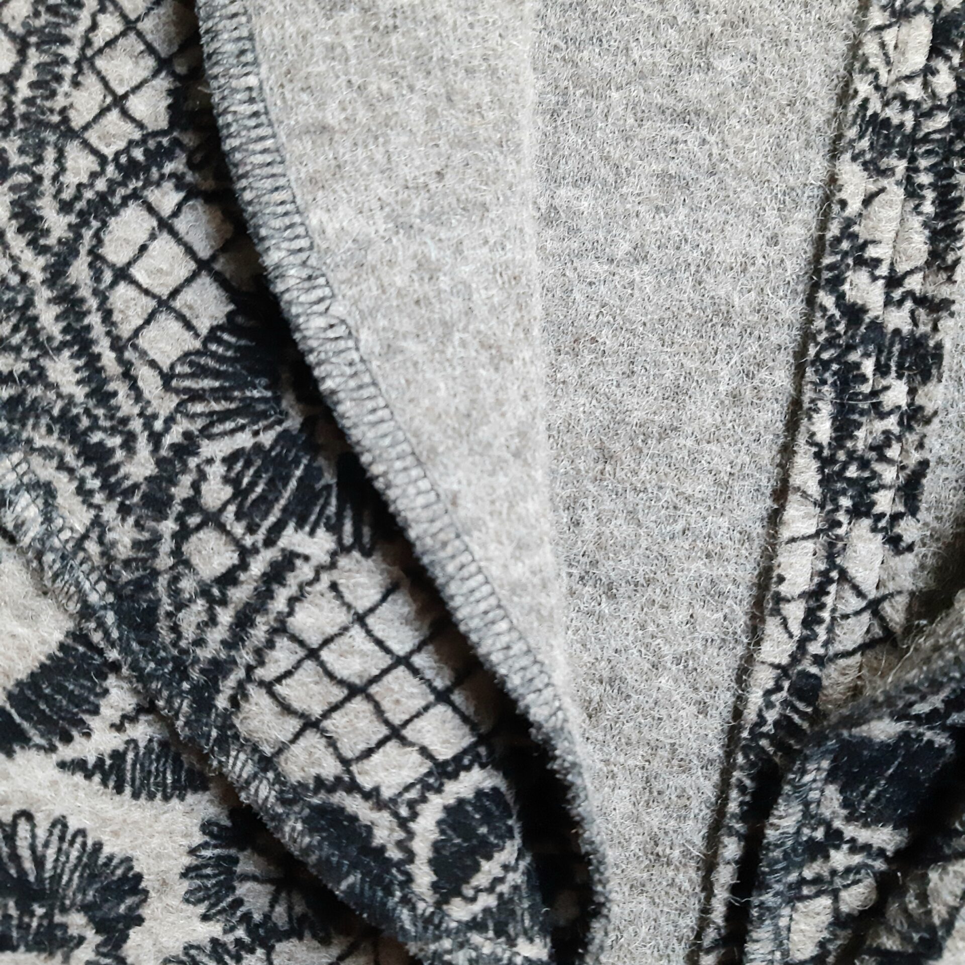 Wir experimentieren und probieren viel neues aus und haben die Konenwolle für uns entdeckt. Walk- und Wollstoffe vernähen wir sehr gerne, da man zum einen nichts abfüttern oder versäubern muss. Zum anderen lassen sich durch kleine Effekte die elegantesten Kleidungsstücke zaubern. So versäubern wir die Nähte, die sichtbar sind, z.B. an Kragen und Ärmel mit der Overlock – hier am Blazer Winterrose zu sehen. Das Overlockmuster passt hier sogar perfekt zum Walkstoff :o)